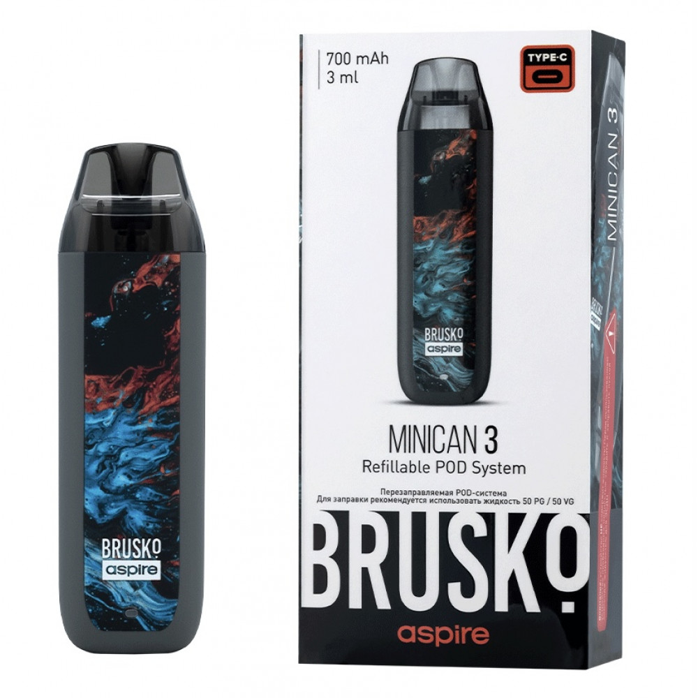 Перезаправляемая Под-Система Бруско Миникан 3 (Brusko Minican 3) 700 mah, Серый Флюид - купить в Якутске